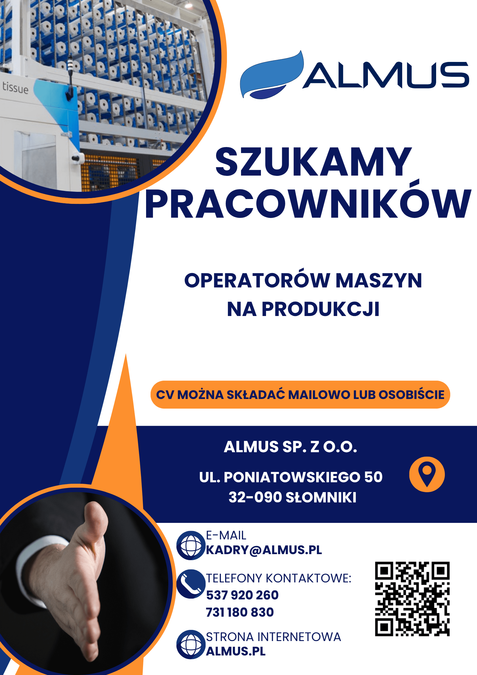 - ALMUS – dynamicznie rozwijające się przedsiębiorstwo działające od 1997 roku w branży produkcji papierów higienicznych